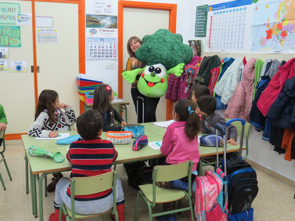 Nosotros estuvimos dos días en el cole impartiendo las charlas, pero durante toda la semana se iba a hablar de nuestra verdura favorita y eso ¡nos encanta! Como muchos ya sabéis esta verdura es estupenda para introducirla en una alimentación equilibrada pues contiene vitaminas y propiedades anticancerígenas, entre otros beneficios.