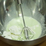 El un bol añade el brócoli licuado, el queso, las almendras, las 2 tazas de agua y una cucharada de azucar. Remueve hasta crear una masa homogénea